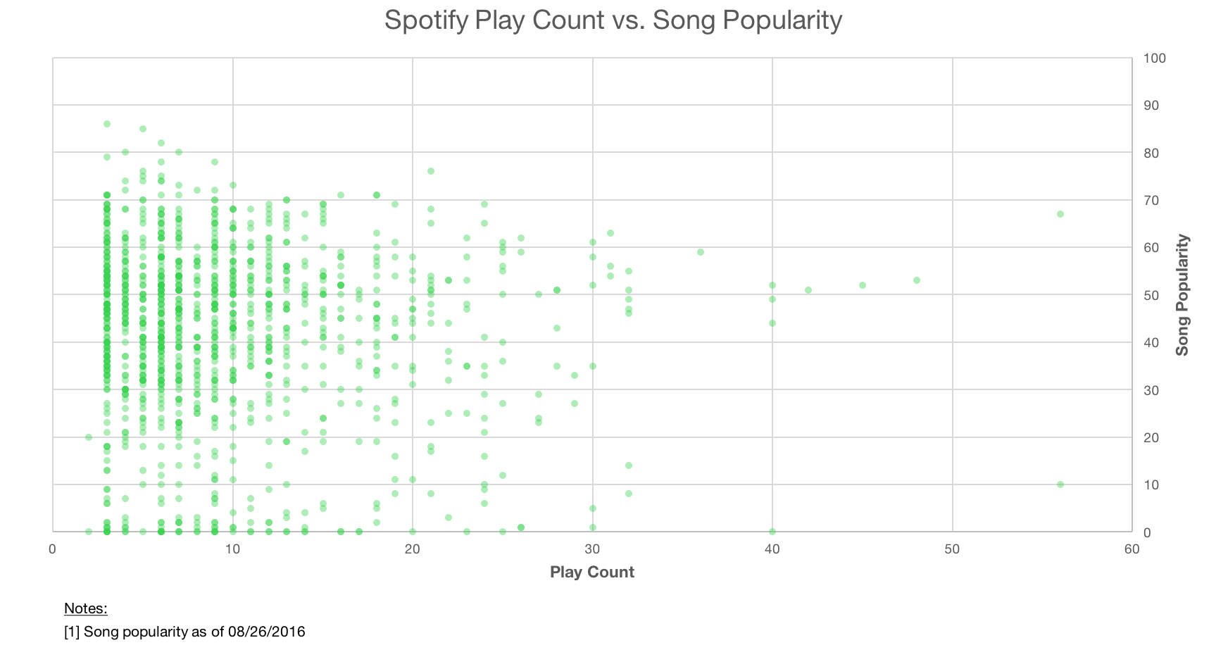 P.P.S Bonus chart! Here’s a chart of how much I listened to a song vs. it’s popularity on Spotify.