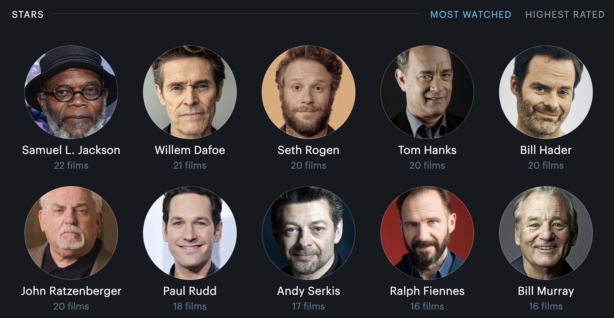 I have been a fairly avid user of Letterboxd for nearly five years now - throw me a follow! I’ve liked the community aspects of the app but I especially love the data logging aspect, where I know what exactly I watched and when. With that plus Letterboxd’s catalog of film metadata on actors, directors, writers, etc. involved with each movie, I’ve always been a bit curious to know which actors and/or filmmakers I have unknowingly watched a lot from.